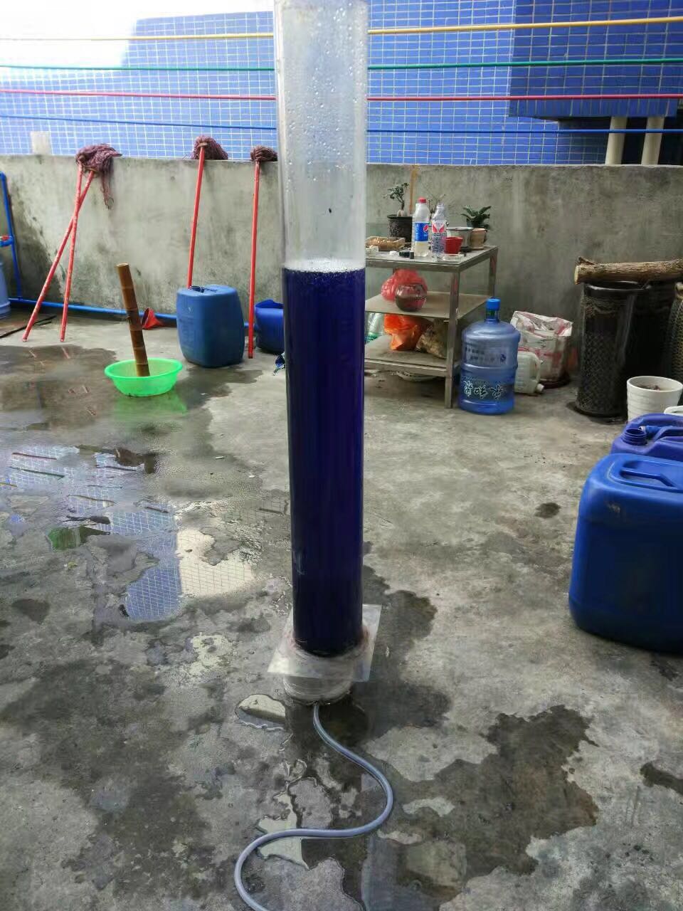 實驗后的脫色效果對比,左一是臭氧曝氣8分鐘的效果,右一是原水